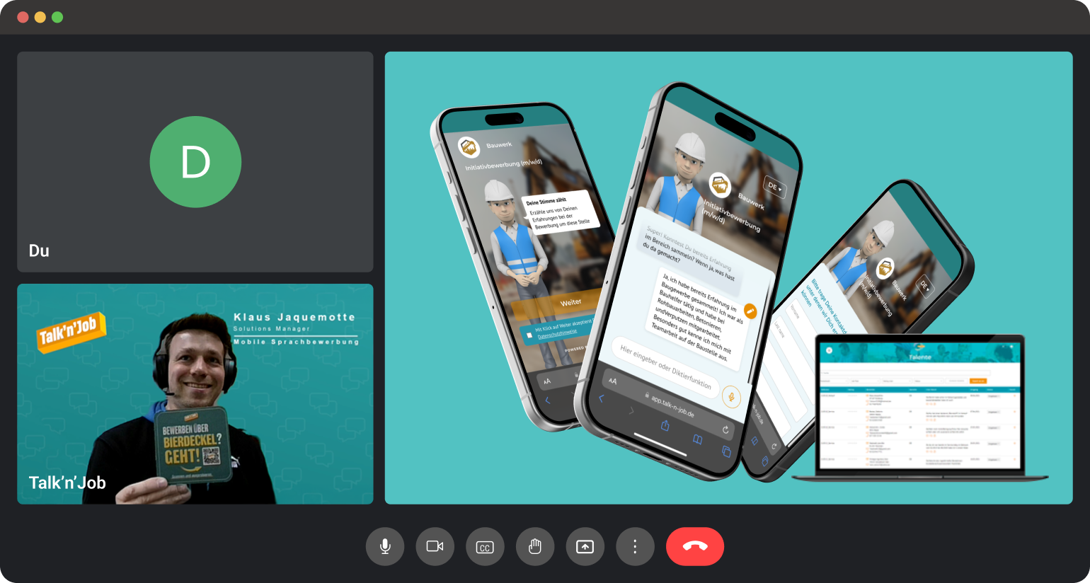 Erfahre, wie Talk’n’Job deine Recruiting-Prozesse vereinfacht: schnell, mobil und stressfrei.