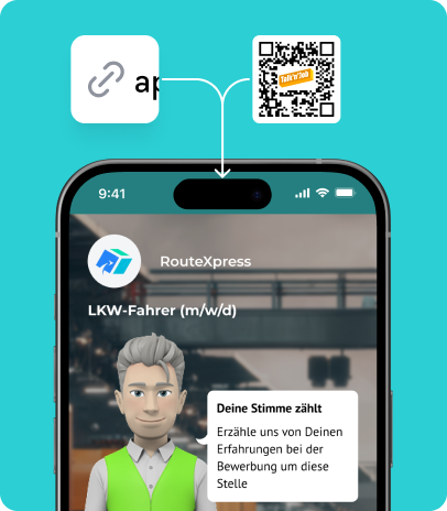 Veröffentliche deine Stellenanzeige mit einem Talk’n’Job-Link oder QR-Code und spiele den Bewerbungszugang online wie offline aus. So entsteht der erste Kontakt mobil und ohne Umwege.