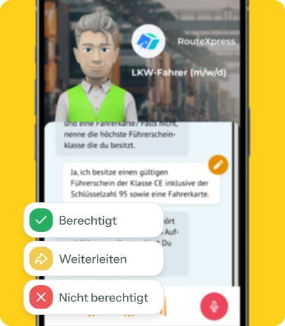Stark ausgeprägter Fahrermangel trifft auf hohen Zeitdruck im Recruiting. Talk’n’Job ermöglicht eine schnelle, mobile Sprachbewerbung ohne Lebenslauf, auch in mehreren Sprachen. Wichtige Kriterien wie Führerschein, Fahrpraxis und Verfügbarkeit für Schicht- und Fernverkehr werden direkt vorqualifiziert erfasst.