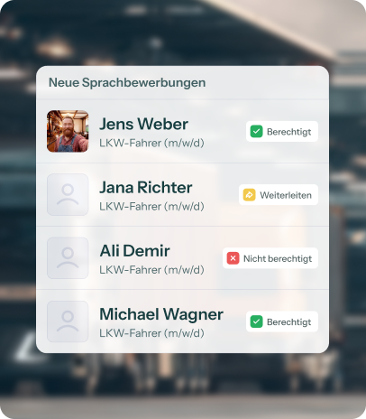 Recruiter erhalten vorqualifizierte Profile mit allen wichtigen Infos auf einen Blick. Das reduziert den Screening-Aufwand und deutlich beschleunigt Entscheidungen